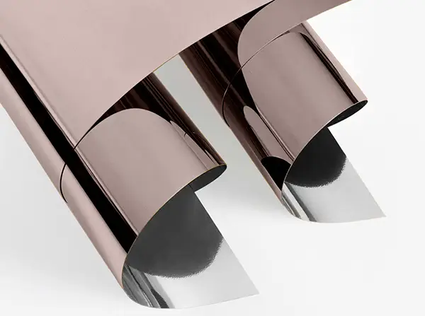 I rivestimenti adesivi PEKROME/200 sono inoltre stampabili in serigrafia, con sistemi digitali UV e intagliabili con plotter anche con sistemi laser. In più, nella finitura argento lucido a specchio, il prodotto può essere utilizzato con successo anche in ambienti outdoor.